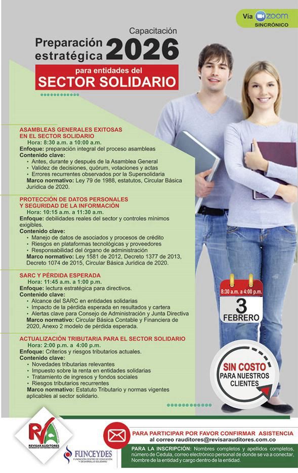 PREPARACIÓN ESTRATEGICA 2026 Dirigido por: Funceydes.Fecha: 3 de febrero de 2026.Horario: 8:00 a.m. – 4:00 p. m.Modalidad: Virtual via ZOOM.Inscripciones al correo: rauditores@revisarauditores.com.co Para Mas Información: 316 878 0434 ECONOMÍA SOLIDARIA Fecha de inicio: Por definir.Fecha de Finalización: Por definir.Horario: Por definir.Días: Por definir.Duración: Por definir.Modalidad: Virtual.Requisitos: Copia de la Cédula al 150%.Llenar el formulario de registro.Clic Aquí. VENTA EN REDES SOCIALES Fecha de inicio: Por Definir.Fecha de Finalización: Por Definir.Horario: Por Definir.Duración: Por Definir.Modalidad: Virtual.Requisitos: Copia de la Cédula al 150%.Llenar el formulario de registro.Clic Aquí. CURSO ESPECIALIZADODirectivos, Comités y Juntas Directivas Fecha de inicio: Por Definir.Fecha de Finalización: Por Definir.Horario: Por Definir.Duración: Por Definir.Modalidad: Virtual.Requisitos: Copia de la Cédula al 150%.Llenar el formulario de registro.Clic Aquí. ARREGLOS NAVIDEÑOS Fecha de inicio: Por Definir.Fecha de Finalización: Por Definir.Horario: Por Definir.Duración: Por Definir.Modalidad: Presencial.Lugar: Sede Recreacional ASOGEMARequisitos: Copia de la Cédula al 150%.Llenar el formulario de registro.Clic Aquí. ARREGLOS NAVIDEÑOS Fecha de inicio: Por Definir.Fecha de Finalización: Por Definir.Horario: Por Definir.Duración: Por Definir.Modalidad: Presencial.Lugar: Por Definir.Requisitos:Copia de la Cédula al 150%.Llenar el formulario de registro.Clic Aquí.